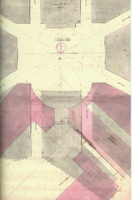 below). Finally a compromise was reached in the final design as seen today (pink). The theater was